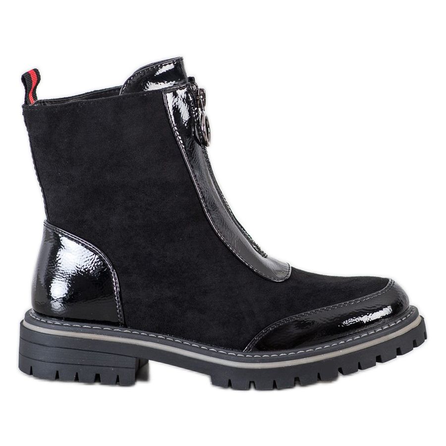 Tack vare deras futuristiska utseende, patenterade finish och klassiska svarta färg kommer dessa stövlar att passa perfekt in i en avslappnad, rockig stil. Plastsulan med slitbana ger tillräckligt grepp på olika underlag, vilket är nödvändigt under höst- och vinterpromenader.