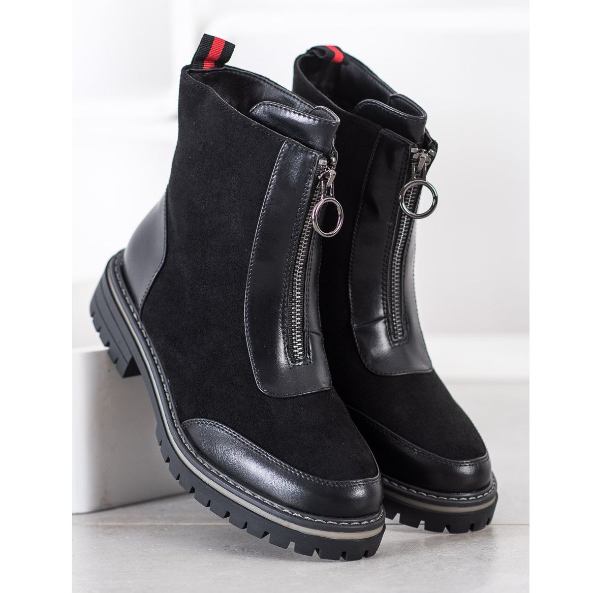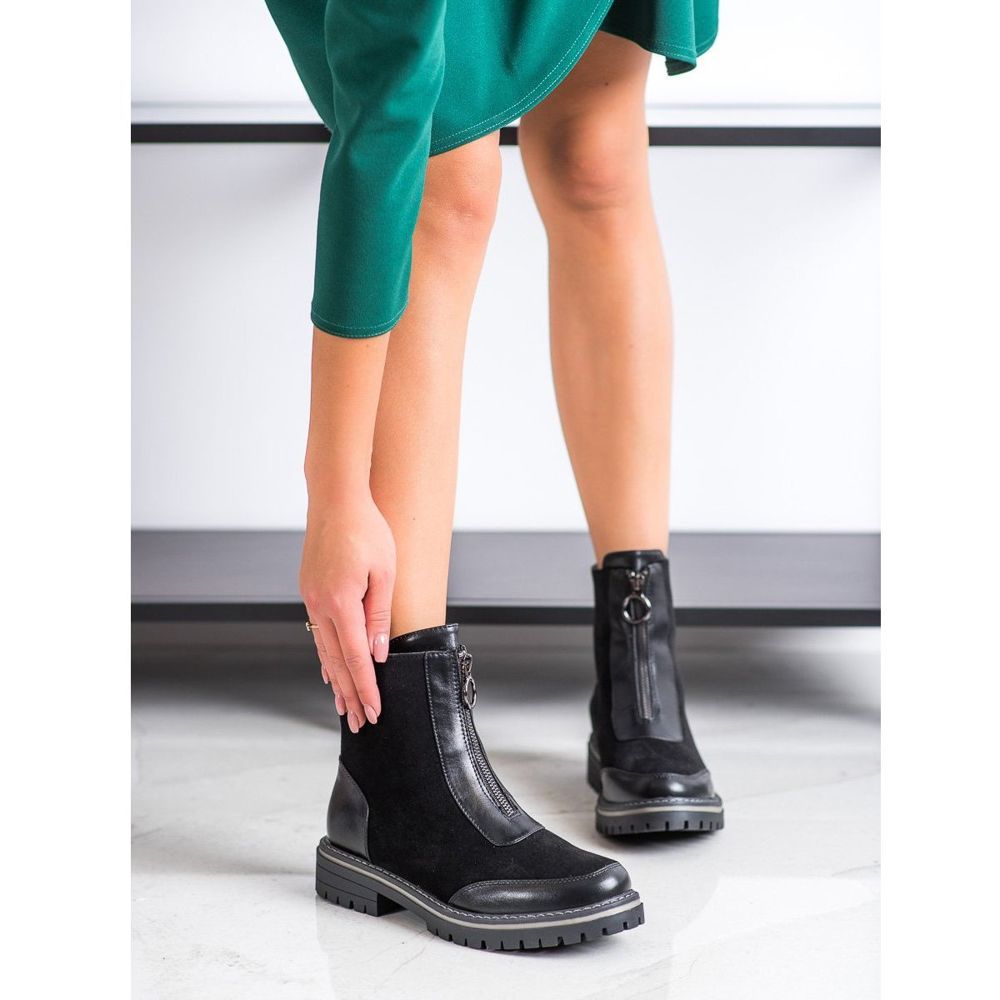 Den övre höjden som når över ankeln (14-15 cm) och en snygg platt klack (4 cm) gör att dessa skor inte bara ser vackra ut, utan garanterar också vardagskomfort. Tack vare den interna isoleringen kommer dina fötter att skyddas från kylan, vilket gör dem till ett idealiskt val för höst/vintersäsongen.