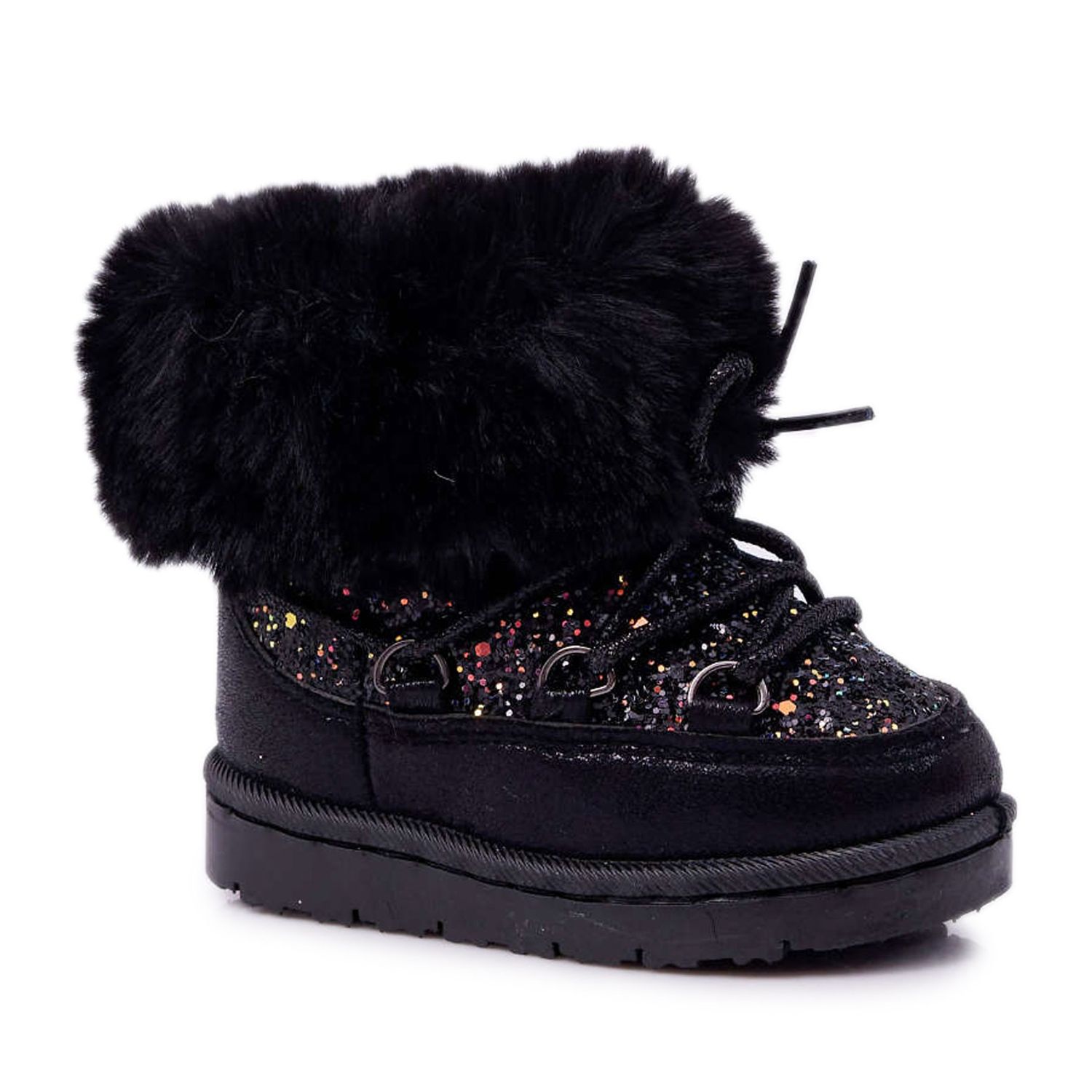 Detaljer: FRROCK Varma barnsnöskor med päls svart kristallräv