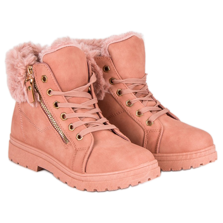 Isolerade ankelstövlar med snörning i rosa från märket Butymodne är det perfekta valet för varje kvinna som vill kombinera komfort med en moderiktig look. Dessa unika stövlar ser bra ut på dina fötter, och deras extremt behagliga insida som är fodrad med mjuk päls ger värme även under kalla dagar.