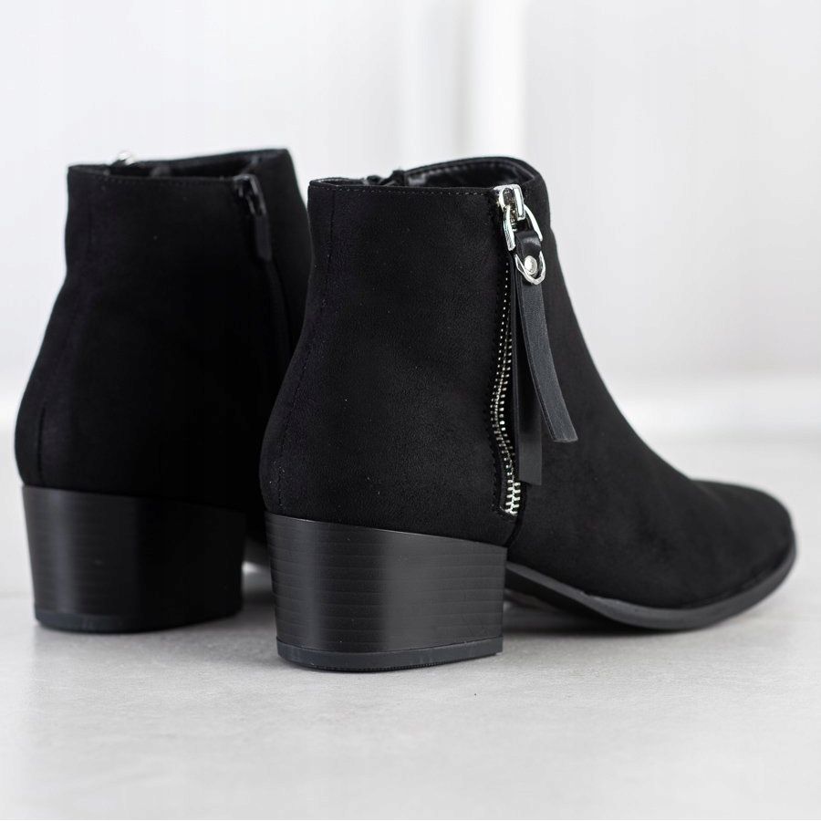 Den övre höjden på 10-11 cm över vristen skyddar inte bara effektivt mot kyla, utan gör också benen optiskt smalare. Perfekta både för vardagsbruk och för speciella tillfällen, Warm Casual Black Ankel Boots är ett förslag som kommer att tillfredsställa varje kvinna som letar efter moderiktiga och praktiska lösningar för höst- och vintersäsongen. I tillverkarens originalförpackning kommer dessa eleganta stövletter säkert att bli hjärtat i varje styling.