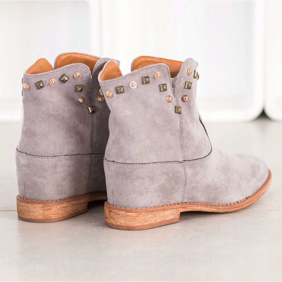 Dessa ankelstövlar för kvinnor har en dold 5 cm hög kil, vilket gör dem inte bara snygga utan också bekväma att bära. Deras praktiska slip-on-knäppning och inbyggda häl säkerställer stabilitet, och den syntetiska, släta sulan garanterar komfort även under en lång dag.