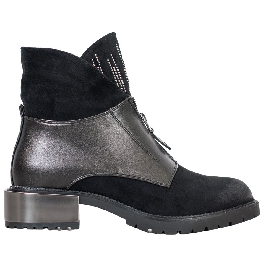 Det är omöjligt att inte nämna den iögonfallande detaljen - eleganta kristaller och silverjetdekorationer dekorerar fint överdelen, vilket ger skorna en unik glans. Dessa element gör ankelboots till en nyckelaccent i både vardagliga och mer sofistikerade kombinationer.
