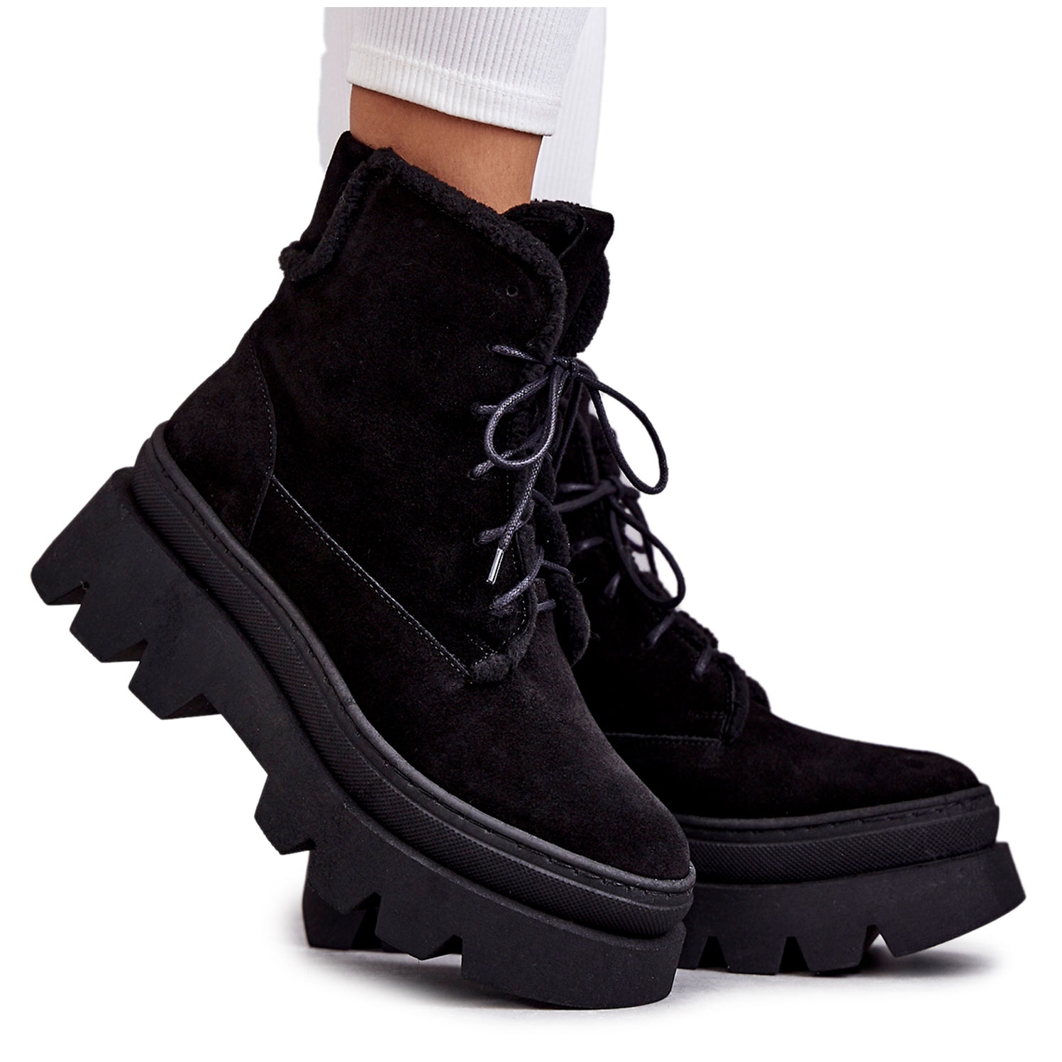 Suede Isolated Lace -up Boots - Elisabeth (svart)