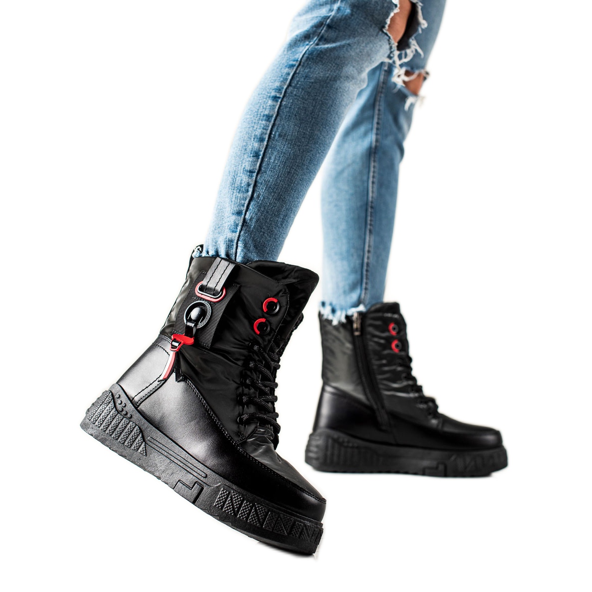 Tack vare hela tån och en inbyggd, mjuk klack ger skorna tillräckligt stöd och komfort under hela dagen. Deras övre höjd på 15-16 cm och bredd i intervallet 26-28 cm skyddar effektivt benen från kyla, och isoleringen garanterar en mysig känsla, även under de kallaste dagarna.