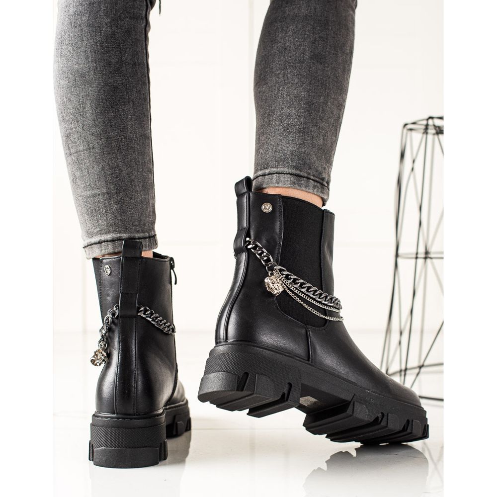 Svarta Goodin stövlar med en dekorativ kedja är en fashionabel accent som perfekt kommer att komplettera alla stylingar. Oavsett om du planerar en promenad runt staden eller ett möte med vänner, kommer dessa ankelboots att vara den perfekta följeslagaren för alla tillfällen.