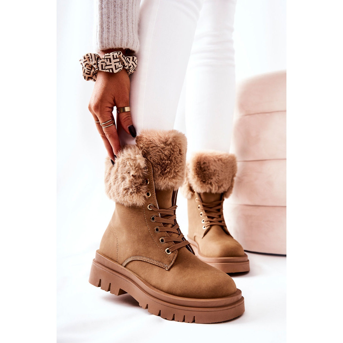 Detaljer: Varma stövlar med päls Beige Farley brun