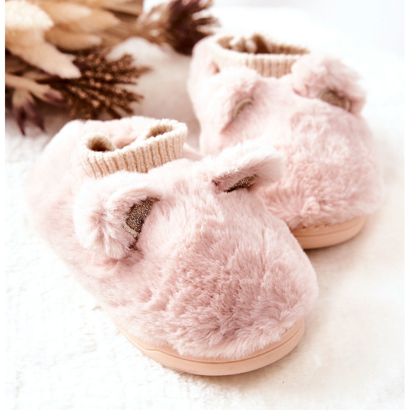 Delikat, isolerad Papcie Dessi - Perfekt för coola vinterdagar. Tillverkade av mjukt, lurvigt material som är trevligt vid beröring, ger de värme och komfort under dagen. På framsidan tillför dekorativa öron med glänsande tråd charm, och den praktiska bälden gör att den övre passar benet på benet, tack vare att papperet håller sig bättre på fötterna.