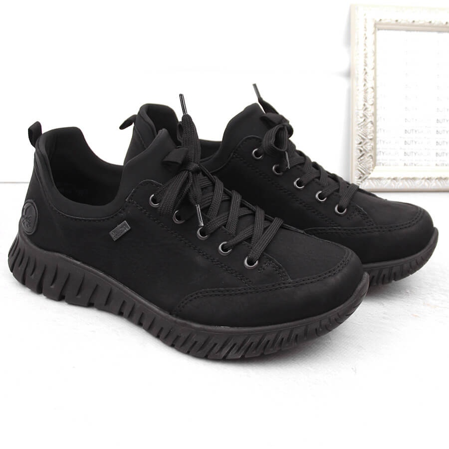 Detaljer: Vattentäta, bekväma svarta slip-on skor för kvinnor Rieker M5352-00