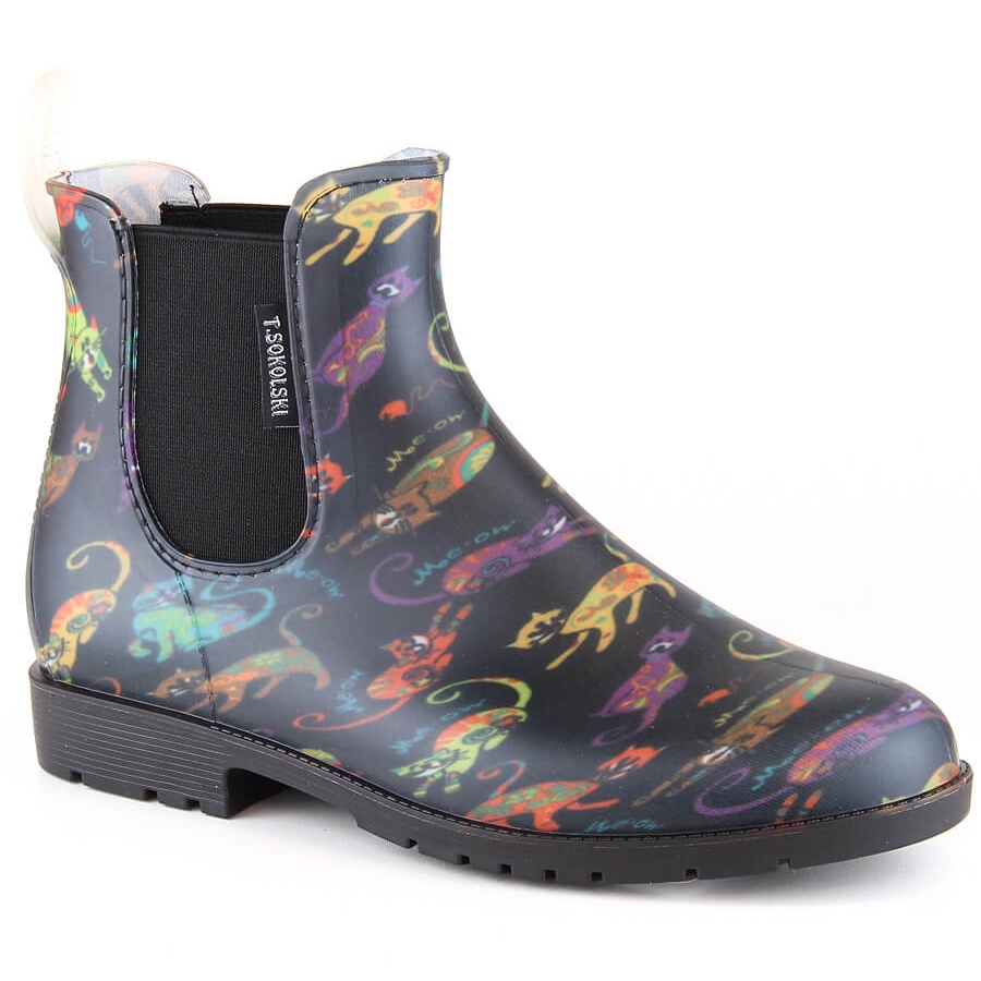 T.Sokolski Vattentäta damstövlar med katter T.Sokolski KAL23-06 svart