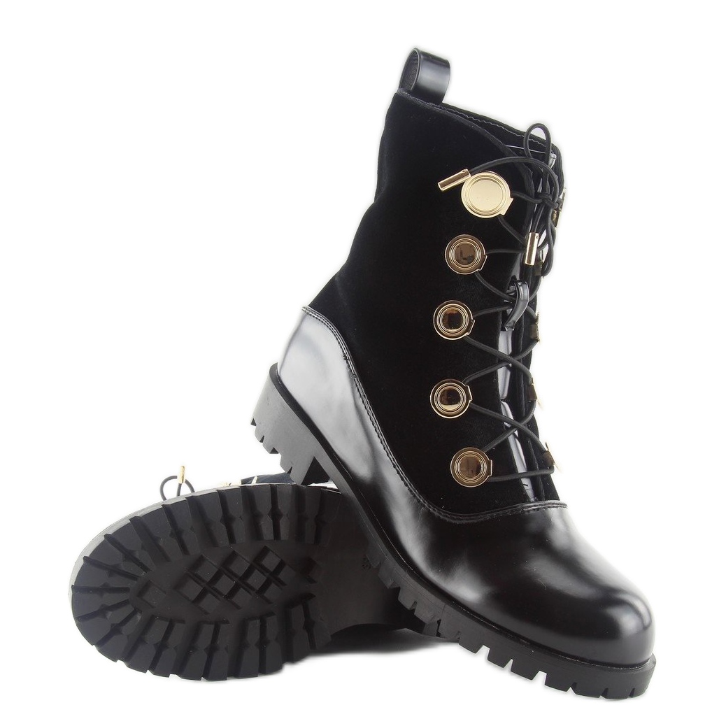 Dessa svarta ankelboots har en 2,5 cm platt klack, vilket garanterar extraordinär komfort för vardagsbruk. De är perfekta för vardagsstyling, vilket ger dem en militär karaktär. Det släta mönstret gör dem universella och lätta att kombinera med olika outfits.