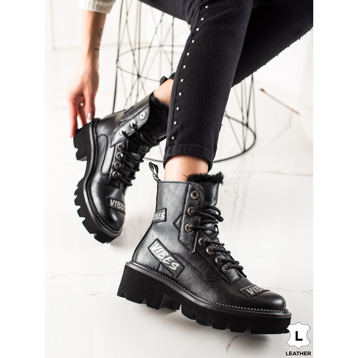 Moderna, feminina artiker vibber stövlar kombinerar komfort med en elegant, lätt stenkaraktär. Tillverkad av naturläder av hög kvalitet, idealiskt för hösten/vintersäsongen - isolerad interiör ger värme, och en stabil häl och profilerad ensam garantikomfort varje dag.