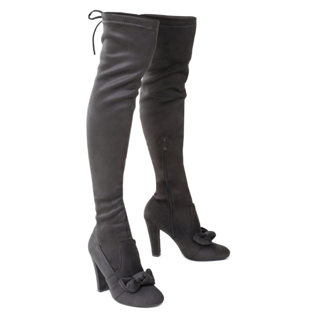 1357-6 stövlarna designades med vardagsbruk i åtanke. Den höga ovandelen, som når över knät, ger dem karaktär, och mandeltån och 10 cm hälen framhäver figuren perfekt. En bekväm dubbelknäppning i form av snörning och dragkedja säkerställer enkel påtagning och perfekt passform mot foten.