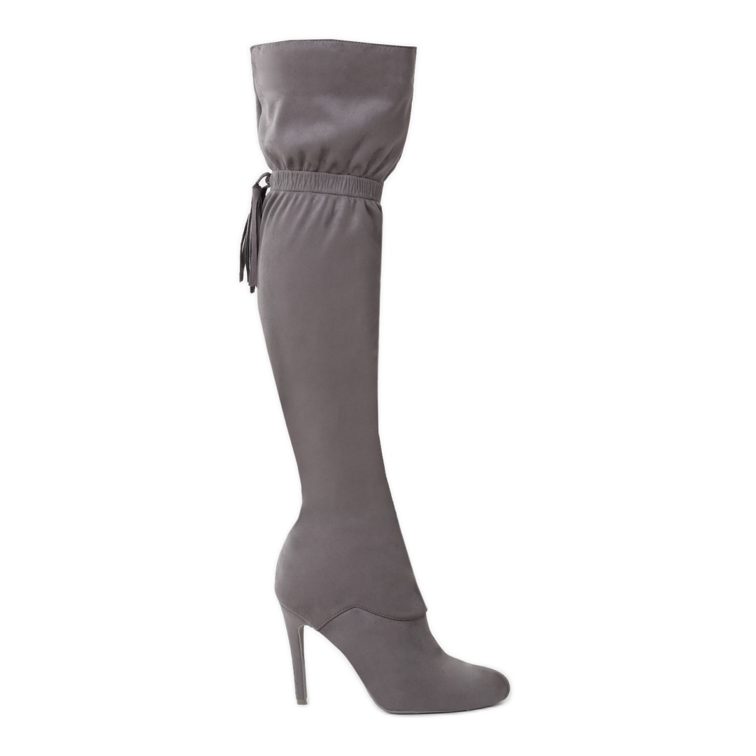 Vi presenterar Vices 1360-5 höga klackar i en elegant grå nyans, som perfekt passar trenden med dammodeskor för höstsäsongen. Dessa klassiska knähöga stövlar, gjorda av eko-läder i mocka av hög kvalitet, kombinerar stil och komfort, vilket gör dem till ett perfekt val för alla tillfällen.