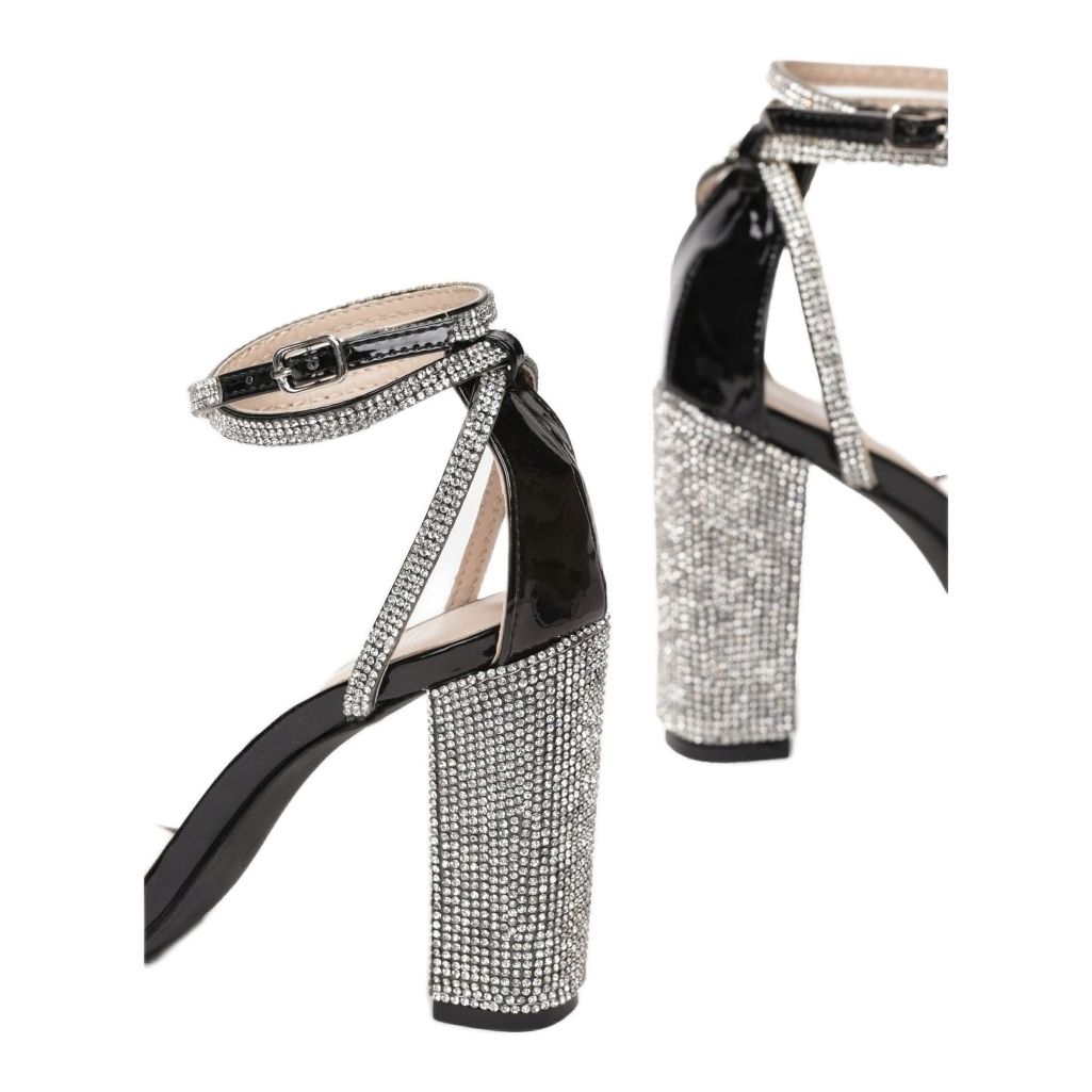 Tack vare klackhöjden på 10,5 cm kommer sandalerna att lägga till några centimeter till din längd, och samtidigt gör deras stabila häl dem helt säkra och bekväma att använda. En ytterligare fördel är dekorativa strass och strass som ger skorna en unik karaktär och glans.