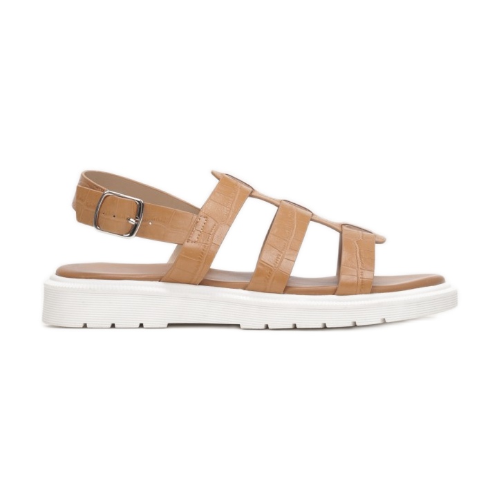 Tillverkade av högkvalitativt eko-läder, de utmärks av en tidlös stil som är perfekt för både vardagsbruk och speciella tillfällen. Tack vare en platt, tjock sula med en höjd på 2 cm ger de komfort och stabilitet, vilket gör dem till ett idealiskt val för sommardagar. Tån på sandalerna är rundad och tårna förblir öppna, vilket ger dem lätthet och elegans.