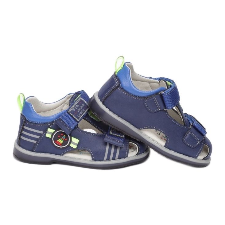 Upptäck komfort och stil i Vices 1SD632-291 sommarsandaler i blått och grönt! Dessa platta sandaler är det perfekta valet för små pojkar som värdesätter rörelsefrihet och komfort att bära. Fästs framtill och vid tårna med bred kardborre, säkerställer en perfekt passform till foten.