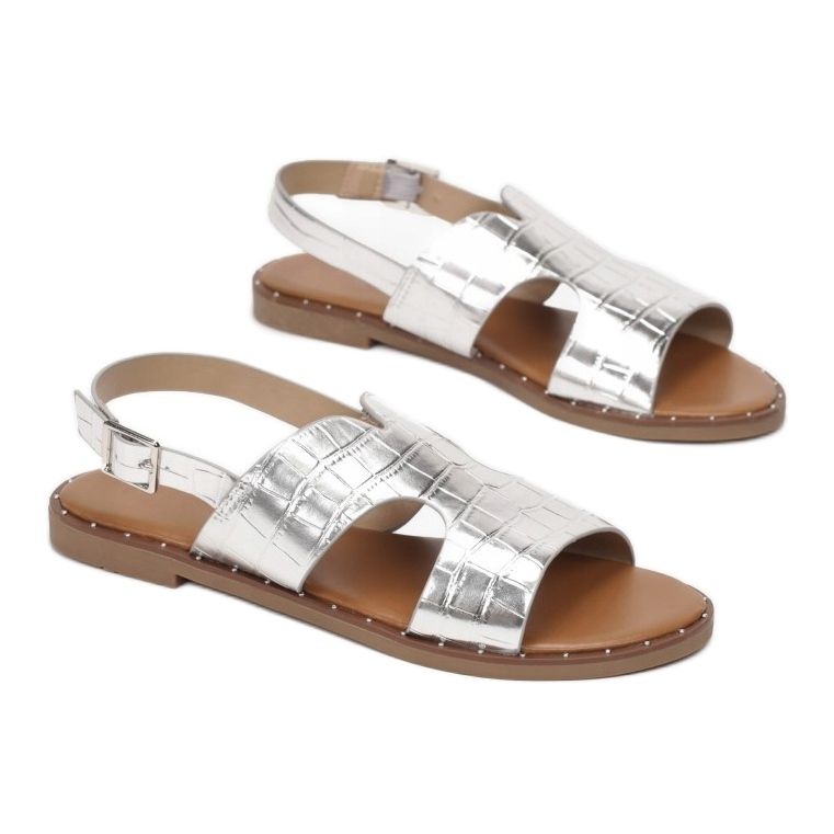 Här är det perfekta förslaget för sommardagar - Vices sandaler 2016-6-52 i en elegant silverfärg. Dessa klassiska platta sandaler är ett måste i alla kvinnors garderob. Tillverkade av högkvalitativt eko-läder, de kännetecknas av en ovandel med iögonfallande prägling som imiterar krokodilskinn, vilket ger en unik stil och modernt uttryck till skorna.