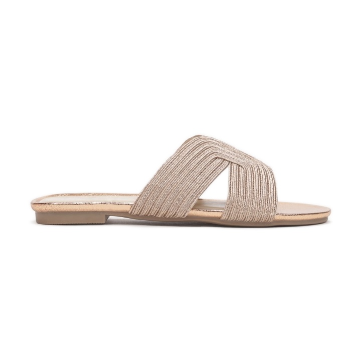 Lägg till en touch av elegans till din vardag med Vices 2038-449 slip-on slides i guld. Dessa snygga skor designades för kvinnor som värdesätter en avslappnad men effektiv look. Den öppna, runda tån och ovandelen som består av anslutna remmar med subtila fördjupningar ger lätthet och modernitet.
