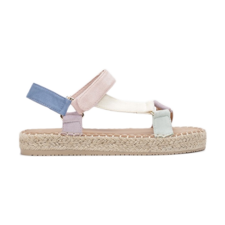 Upptäck komfort och stil med Vices 3518-216-mix sandaler! Dessa unika sandaler med låg plattform utmärker sig för sitt eleganta och moderiktiga utseende tack vare breda, pastellfärgade remmar som är subtilt förbundna med triangulära element. Fäst med ett praktiskt kardborreband, garanterar de inte bara estetik, utan också komfort när de bärs.