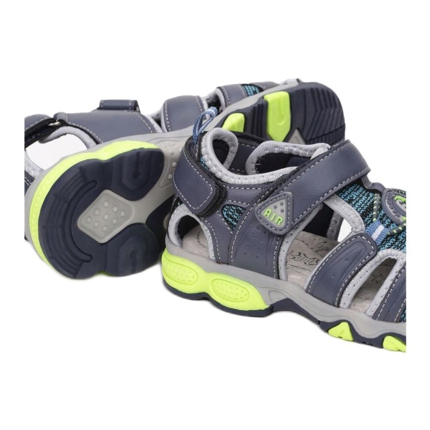 Upptäck Vices 3SD601-291 sandaler i marinblått och grönt - perfekt för små upptäcktsresande! Dessa snygga sandaler kännetecknas av en tjockt präglad, färgglad sula, som inte bara tillför charm, utan också ger utmärkt grepp under utomhusaktiviteter. Den uppbyggda ovandelen med mjuka utskärningar på sidorna garanterar bärkomfort och den runda tån och täckt häl skyddar dina fötter mot skador.