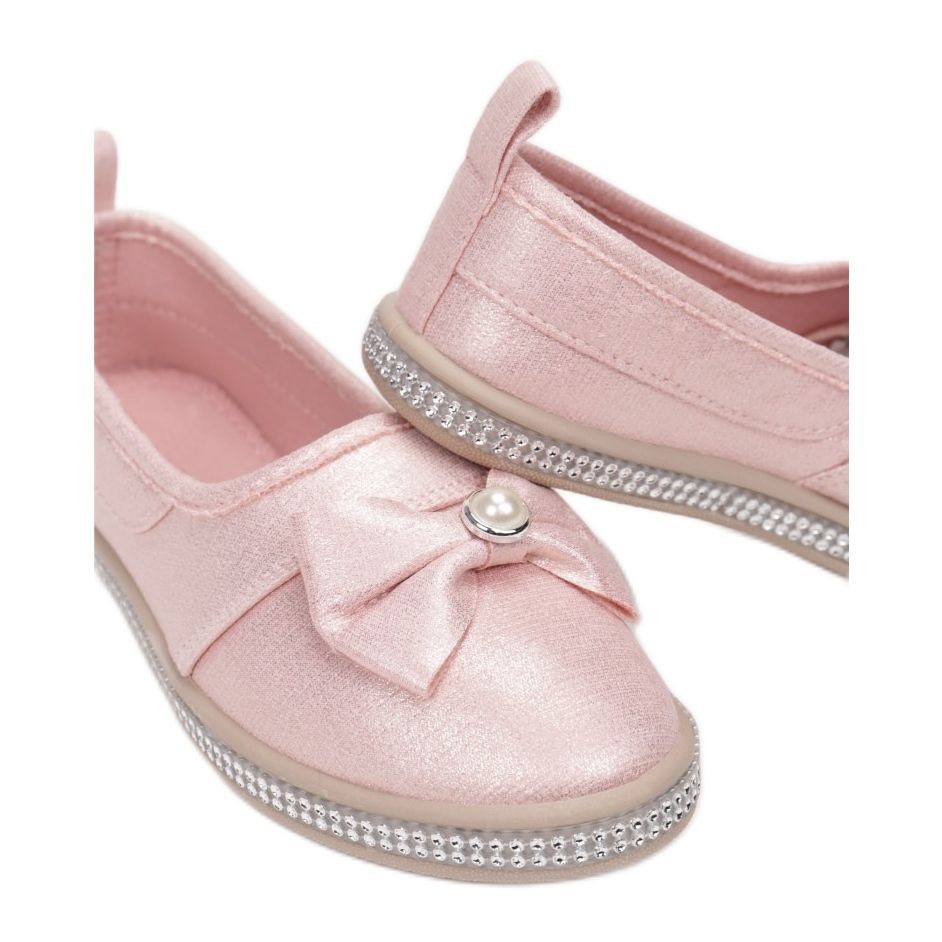 En av de unika delarna av dessa sneakers är en dekorativ rosett placerad vid tån och en pärlformad insats, som tillför charm och flickaktig charm till skorna. Dessutom gör sulan dekorerad med imiterade zirkoner på sidorna varje steg unikt.