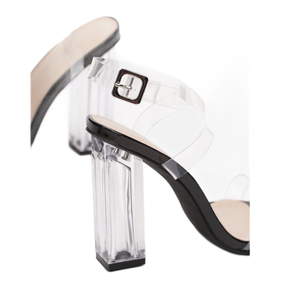 Vices sandaler kännetecknas också av iögonfallande detaljer i form av strass och strass, som ger dem lite glans och gör dem till ett utmärkt komplement till varje sommarstyling. En hög stolpe med en höjd på 11 cm förlänger benen optiskt, vilket framhäver varje kvinnas figur.