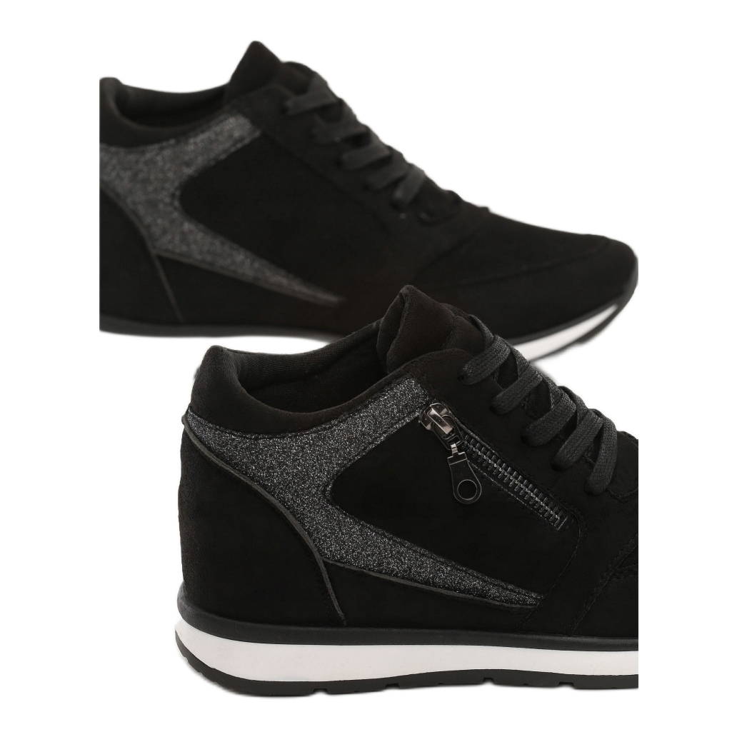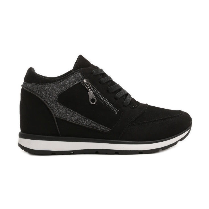 8368-1-modellen har en täckt kil ca 4 cm hög, vilket tillför elegans och samtidigt säkerställer stabilitet under gång. En tjock, vit plattform i en kontrasterande färg är en fashionabel accent som skiljer dessa skor från andra. En ytterligare fördel är snörningen som gör att du kan anpassa skorna efter dina individuella behov, och den dekorativa dragkedjan och det gråa inlägget ger det hela ett modernt utseende.