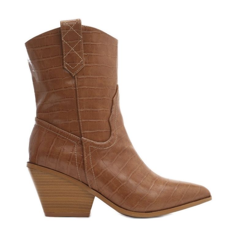 Upptäck unik stil och komfort med Vices 8498-68-camel cowboystövlar i en brun nyans. Dessa eleganta 7 cm höga klackskor kombinerar klassisk design och moderna material. Tillverkade av högkvalitativt ekologiskt läder, de ser snygga ut tack vare den spetsiga tån och unika präglingar som imiterar krokodilskinn.