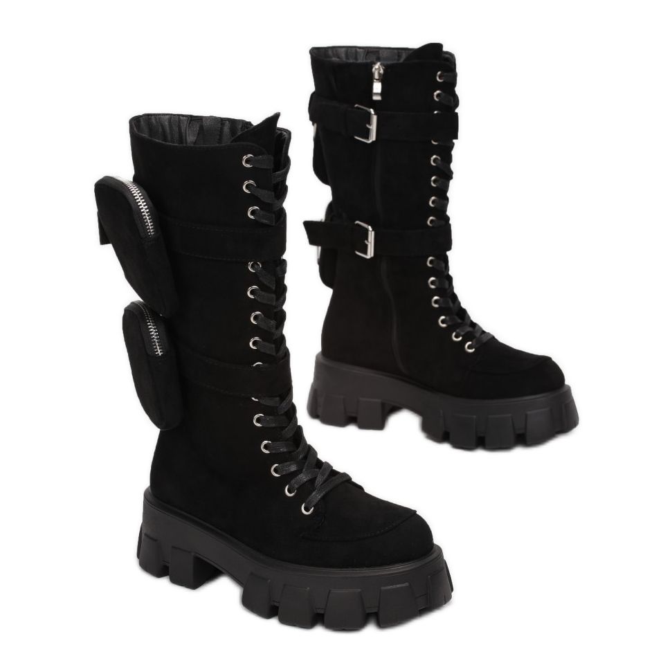 Vi presenterar Vices 8597-38 höga stövlar i en elegant svart färg, som säkerligen kommer att vara ett perfekt komplement till vilken styling som helst. Dessa fashionabla damskor kännetecknas av en tjock klack och en massiv botten, vilket garanterar inte bara stabilitet utan också extraordinär bärkomfort.