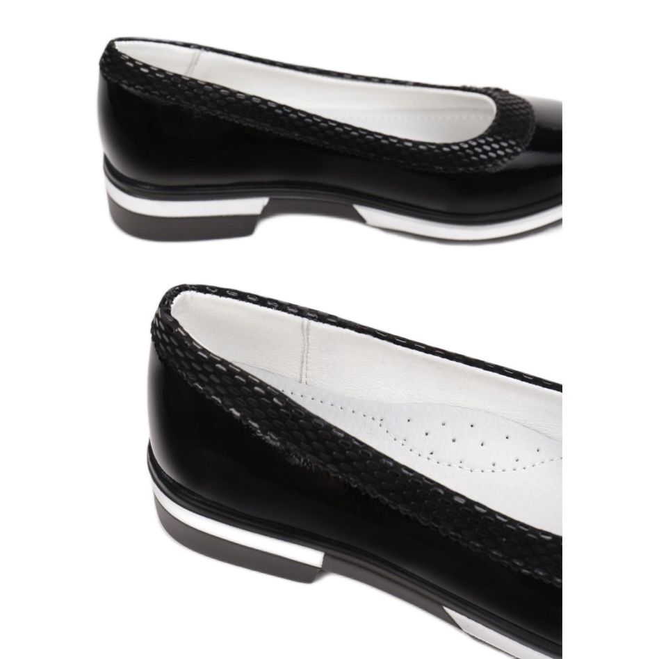 Dessa eleganta balettlägenheter är perfekta för olika tillfällen - både varje dag och under viktiga familjeevenemang. Den klassiska svarta finishen gör att de matchar många stilar, både eleganta och avslappnade.