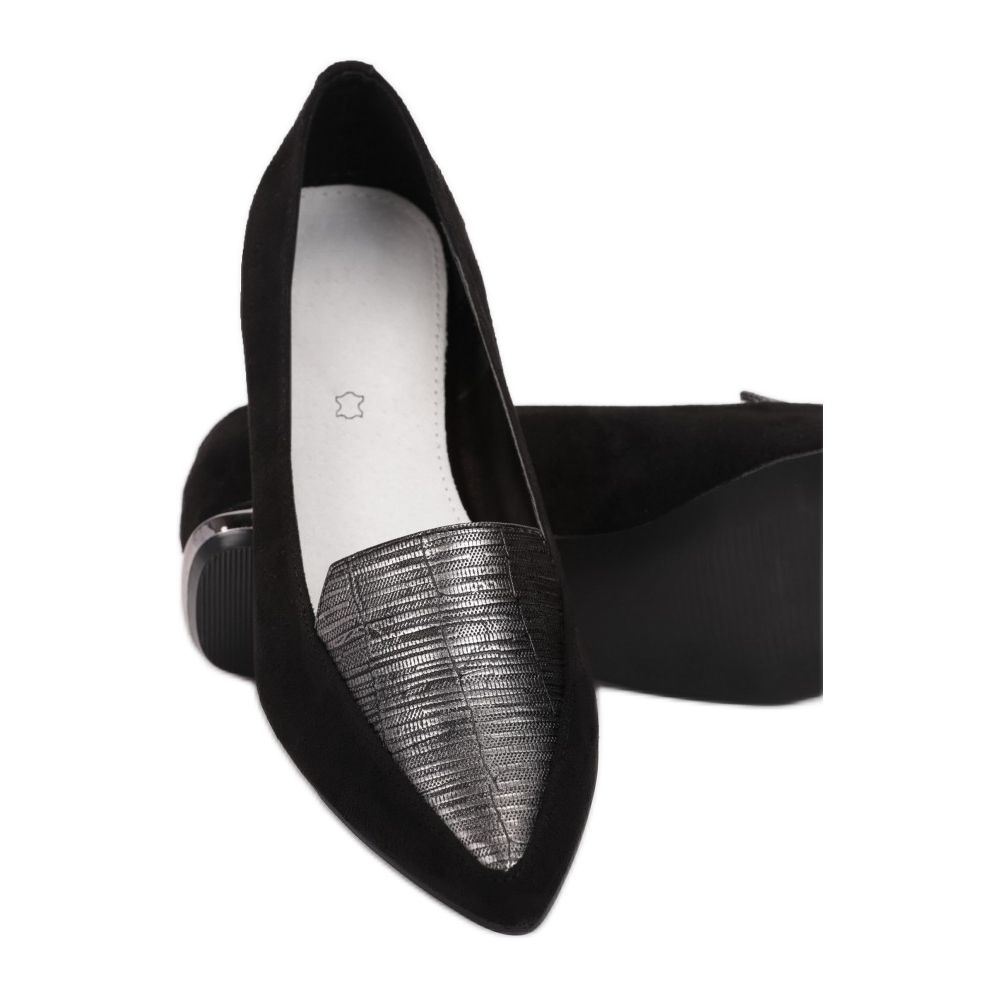 Upptäck elegans och komfort med Vices FL354A pumpar i svart. Dessa slip-on skor kombinerar modern design och funktionalitet, vilket gör dem till det perfekta valet för en mängd olika tillfällen. De har en oregelbunden, låg 2 cm hög klack och erbjuder utmärkt stabilitet, samtidigt som de ger en smal, spetsig tå som ger elegans till hela stylingen.