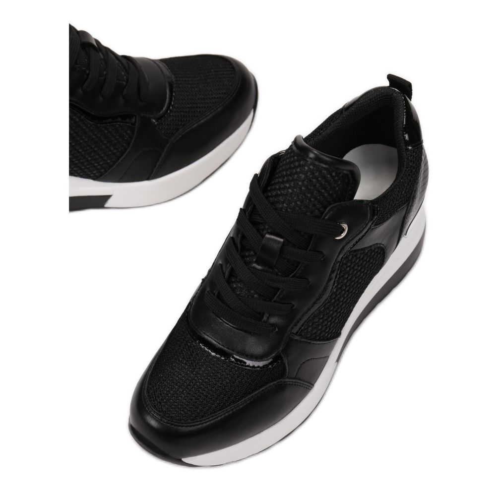 Vices HQ260-38 sneakers i en elegant svart färg är det perfekta valet för kvinnor som värdesätter mode och komfort. Ovandelen som avslöjar fotleden, dekorerad med inlägg, lockar uppmärksamhet, och ovanliga element i form av ett nätmotiv och en metallisk beläggning gör dessa skor till en riktig höjdpunkt i alla stylingar.