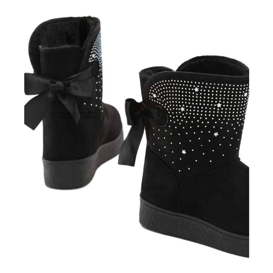 Den karakteristiska 3,5 cm höga plattformen ger komfort när du går, och den runda tån gör dessa snöstövlar inte bara praktiska utan också moderiktiga. En ytterligare fördel är dekorativa strass på ovansidan, som lägger till en elegant accent till vardagsstyling. En subtil rosett fullbordar helheten och ger skorna en feminin charm.