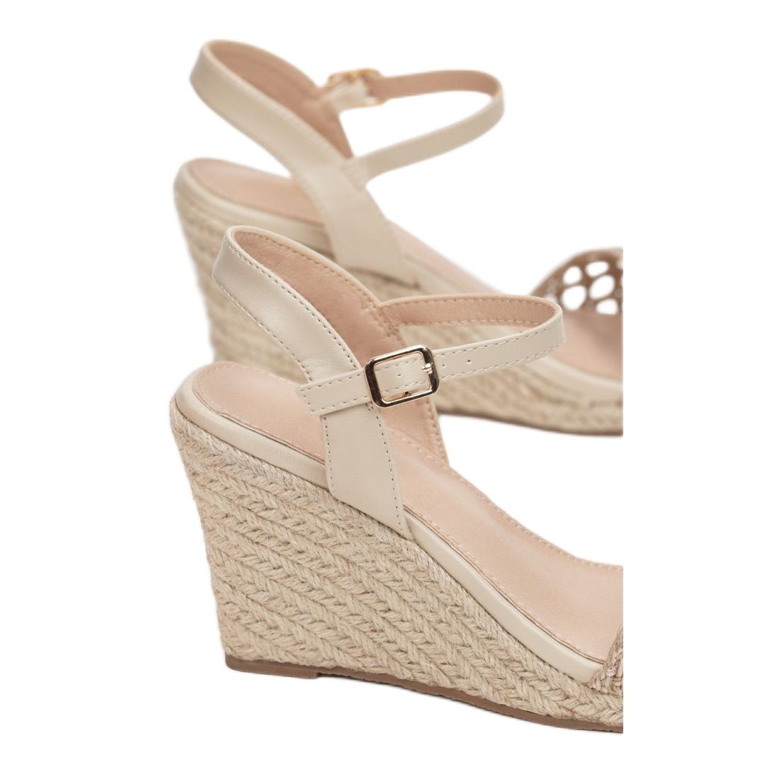 Knäppta med ett praktiskt spänne säkerställer de en perfekt passform till foten, vilket gör varje ögonblick som spenderas i dessa sandaler till ett nöje. Sulan dekorerad med juteflätor lockar inte bara uppmärksamhet utan lägger också till lätthet till hela kompositionen.