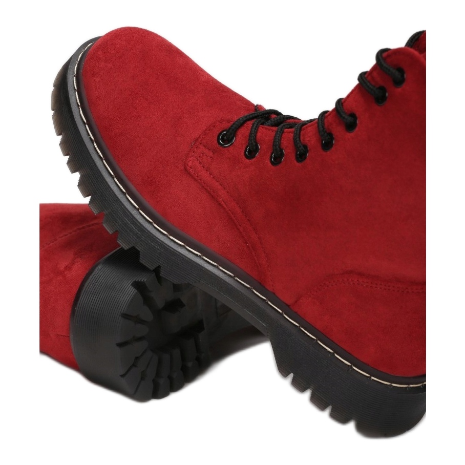 Lär känna Workery Vices LT102-64 i en intensiv röd färg, perfekt för kvinnor som inte är rädda för modeutmaningar. Dessa arbetsstövlar med snörning, gjorda av ekologisk mocka av hög kvalitet, är en perfekt kombination av stil och komfort. Deras starka, svarta sula säkerställer stabilitet och utmärkt grepp, perfekt för kallare dagar som ofta åtföljer höstväder.