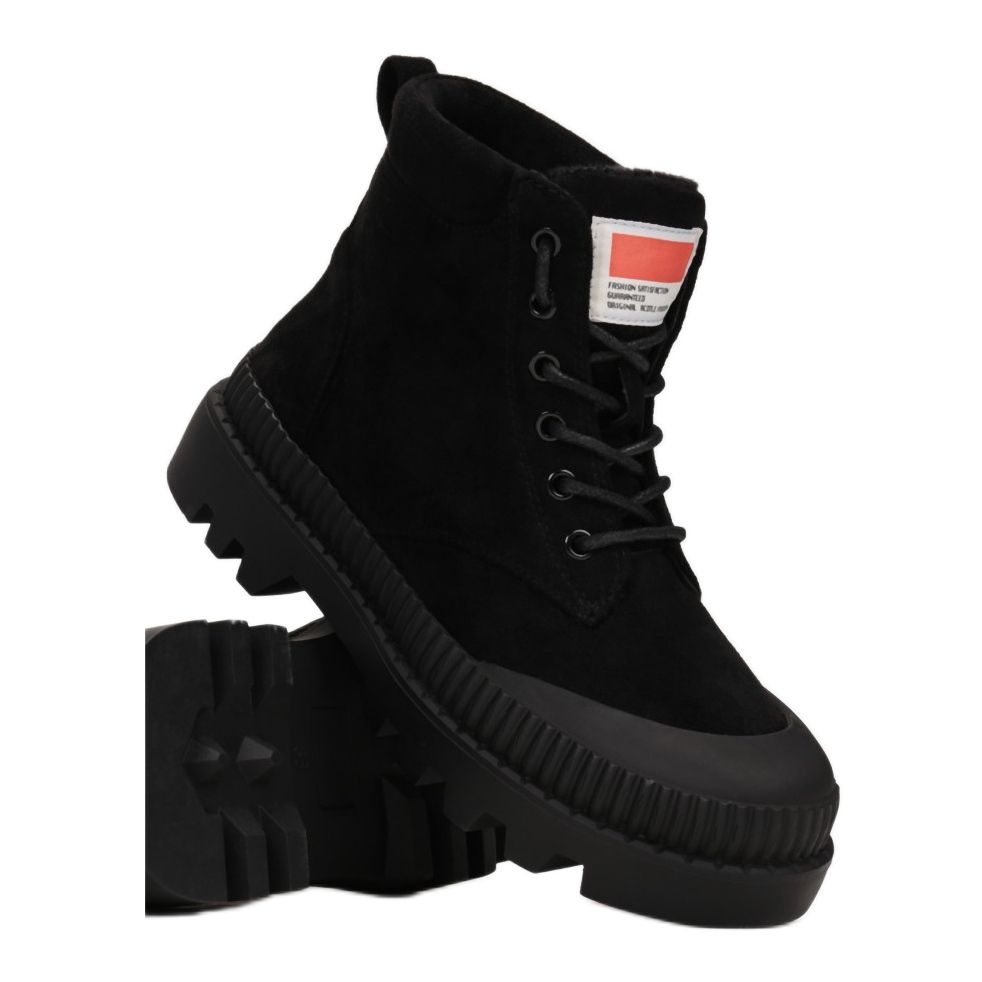 Det yttre materialet på skorna är annorlunda, vilket säkerställer hållbarhet och enkel rengöring. Interiören är fylld med tyg som garanterar komfort att bära hela dagen lång. Den runda nosen ger karaktär och gör dem lämpliga för olika stilar.