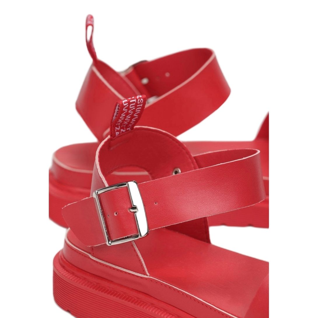 Den genomsnittliga plattformshöjden på 4 cm gör dem bekväma för dagligt bruk, och den syntetiska sulan med ett skydd säkerställer tillräckligt grepp. Tack vare sin enhetliga röda färg matchar dessa sandaler perfekt med olika stilar, vilket ger dem lite friskhet och energi.