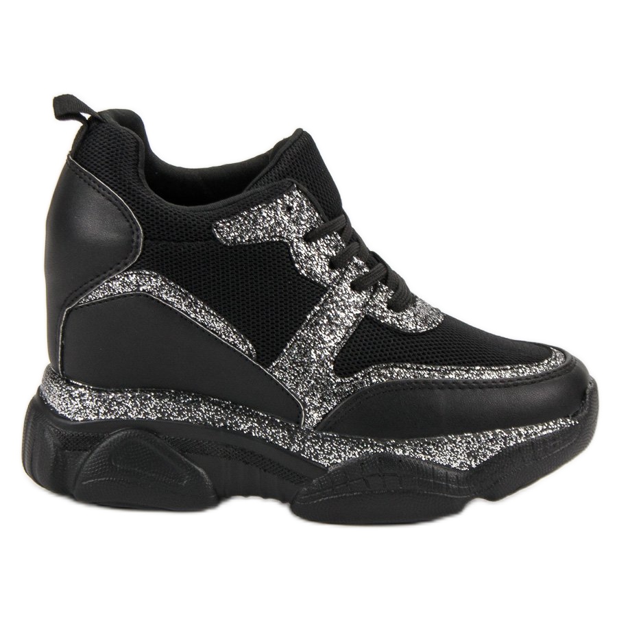 VICES svarta glitter sneakers är det perfekta valet för kvinnor som värdesätter både komfort och moderiktigt utseende. Dessa isolerade skor med hög kil kännetecknas av ekologiskt läder, som inte bara ser bra ut, utan också värnar om miljön.
