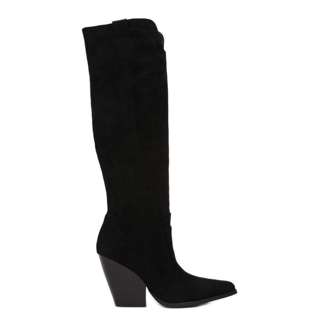 Vices T135-38 stövlar i svart är ett elegant och stilrent val för varje kvinna. Dessa skor är gjorda av högkvalitativ eko-mocka och kombinerar modernitet med en klassisk design. Deras ovandel ovanför knäet framhäver inte bara benen, utan säkerställer också termisk komfort under kallare dagar, vilket gör dem till ett utmärkt val för höst- och vinterperioden.