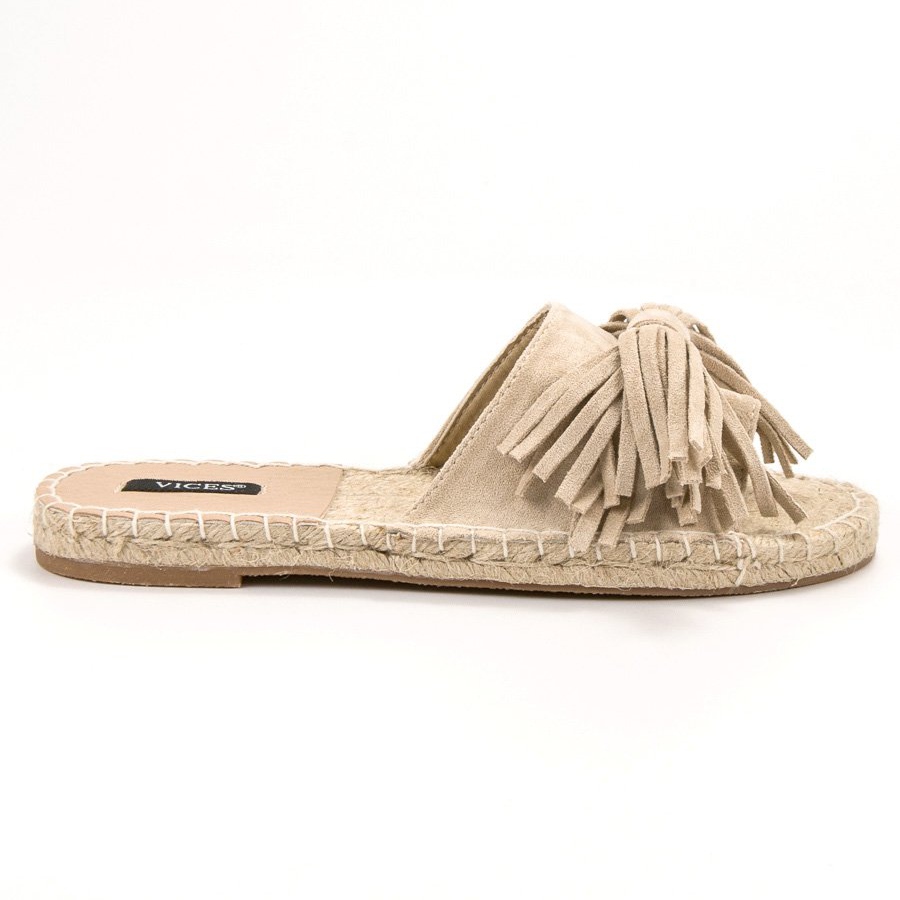 Fransarna, som är en intressant detalj, lägger till en originell stil till VICES-fliken, som passar perfekt till sommaren, luftiga klänningar och casual outfits. Tack vare slip-on-fästet blir det snabbt och bekvämt att ta på dem.