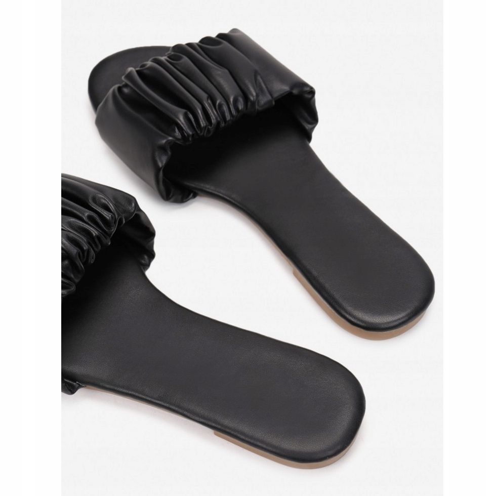 Upptäck komfort och stil med Vices WL14-38-svarta flip-flops i en elegant svart färg. Dessa slip-on rutschbanor är den perfekta kombinationen av komfort och modern design. Deras öppna tå och breda band dekorerad med subtila volanger ger en unik karaktär till helheten, vilket gör dem lämpliga för både vardagliga och mer avslappnade stilar.