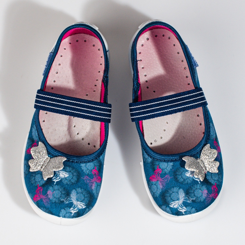 Dessa tofflor är gjorda av högkvalitativa material och har en ovandel i textil, vilket gör dem lätta och behagliga att bära. Interiören är färdig med halvt naturligt läder, vilket säkerställer komfort och tillräcklig ventilation. Innersulan, även den av naturligt läder, anpassar sig till fotens form, vilket säkerställer hälsa och komfort för små fötter.
