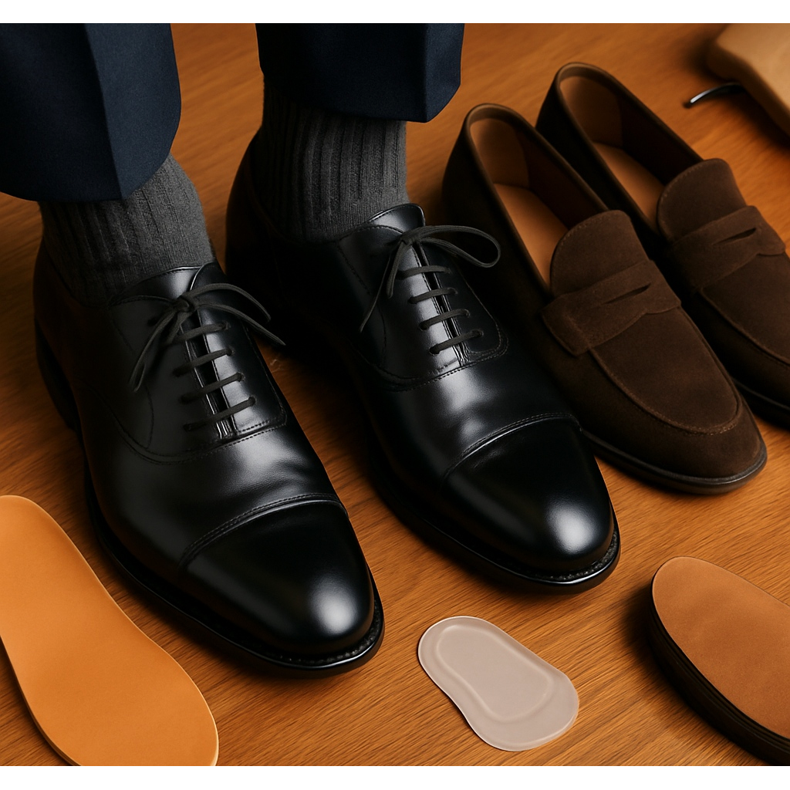Läder andas bättre än syntetmaterial, vilket är avgörande när man har skor på sig hela dagen. Tänk också på gelhälinlägg för att undvika skav.