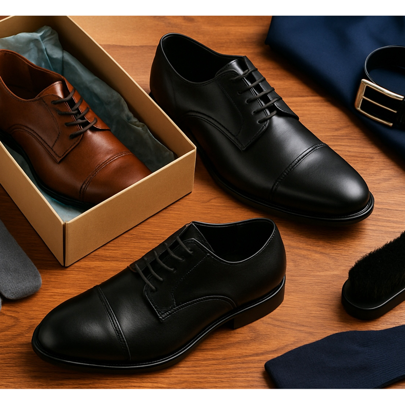 Skor ska harmonisera med ett bälte, klockband och andra lädertillbehör. Svarta skor med svart bälte, bruna med bruna.