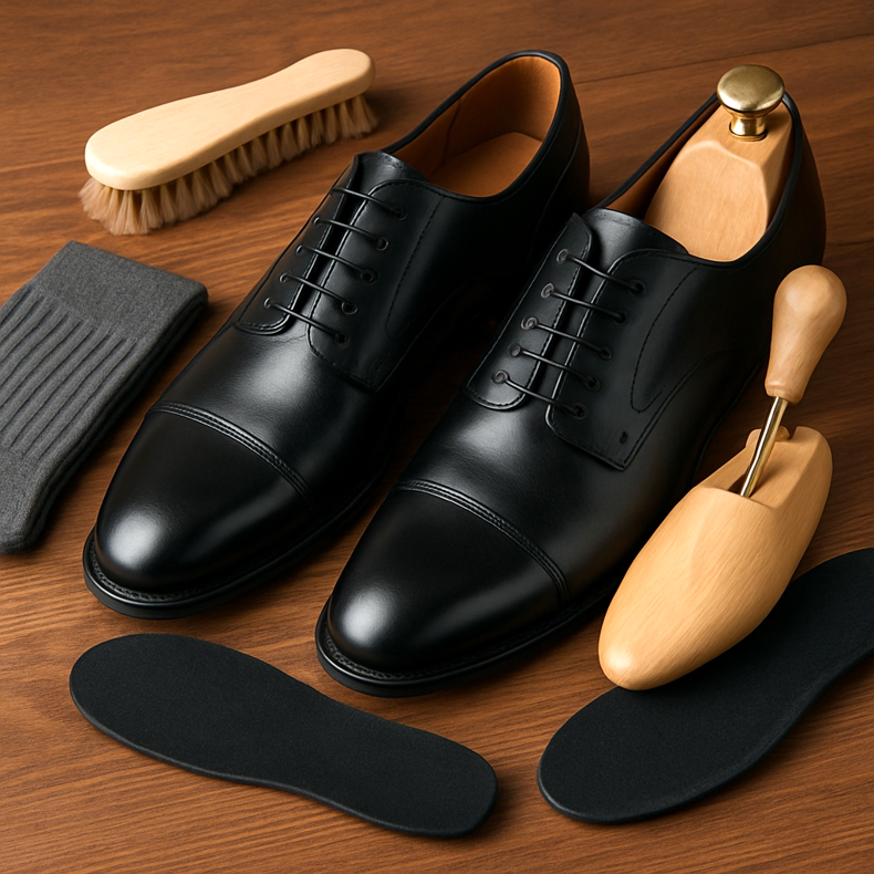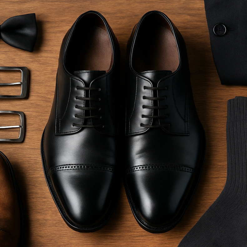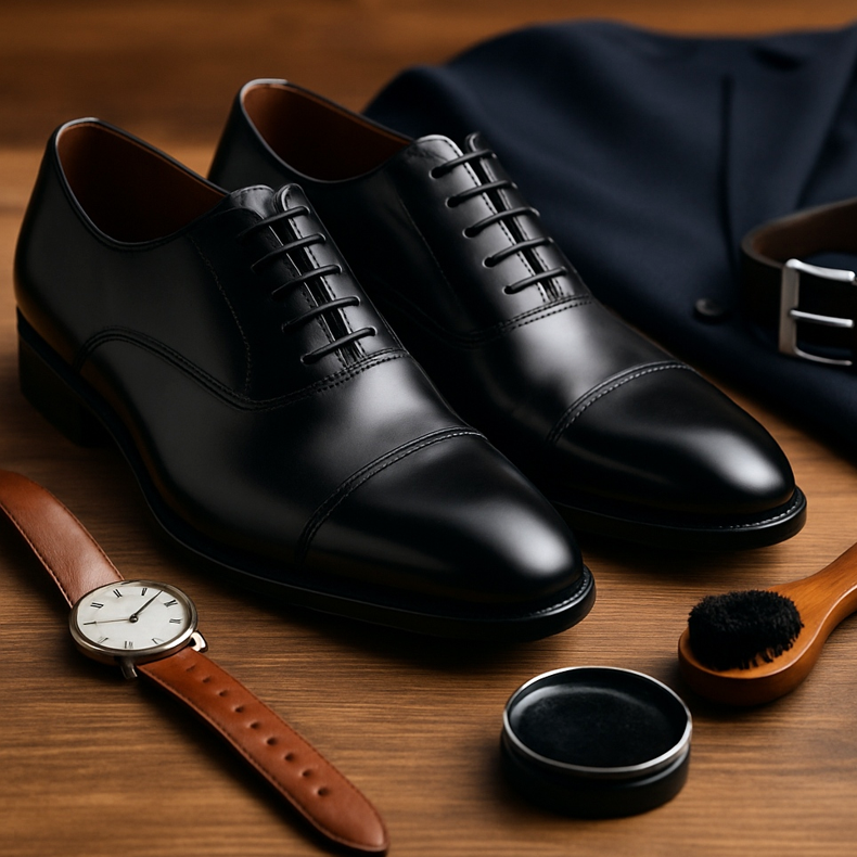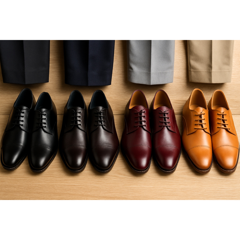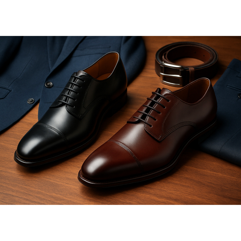 Skor ska harmonisera med ett bälte, klockband och andra lädertillbehör. Svarta skor med svart bälte, bruna med bruna.