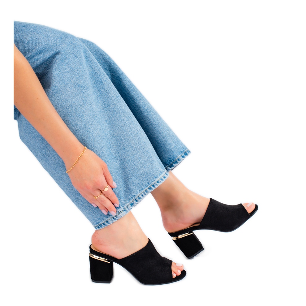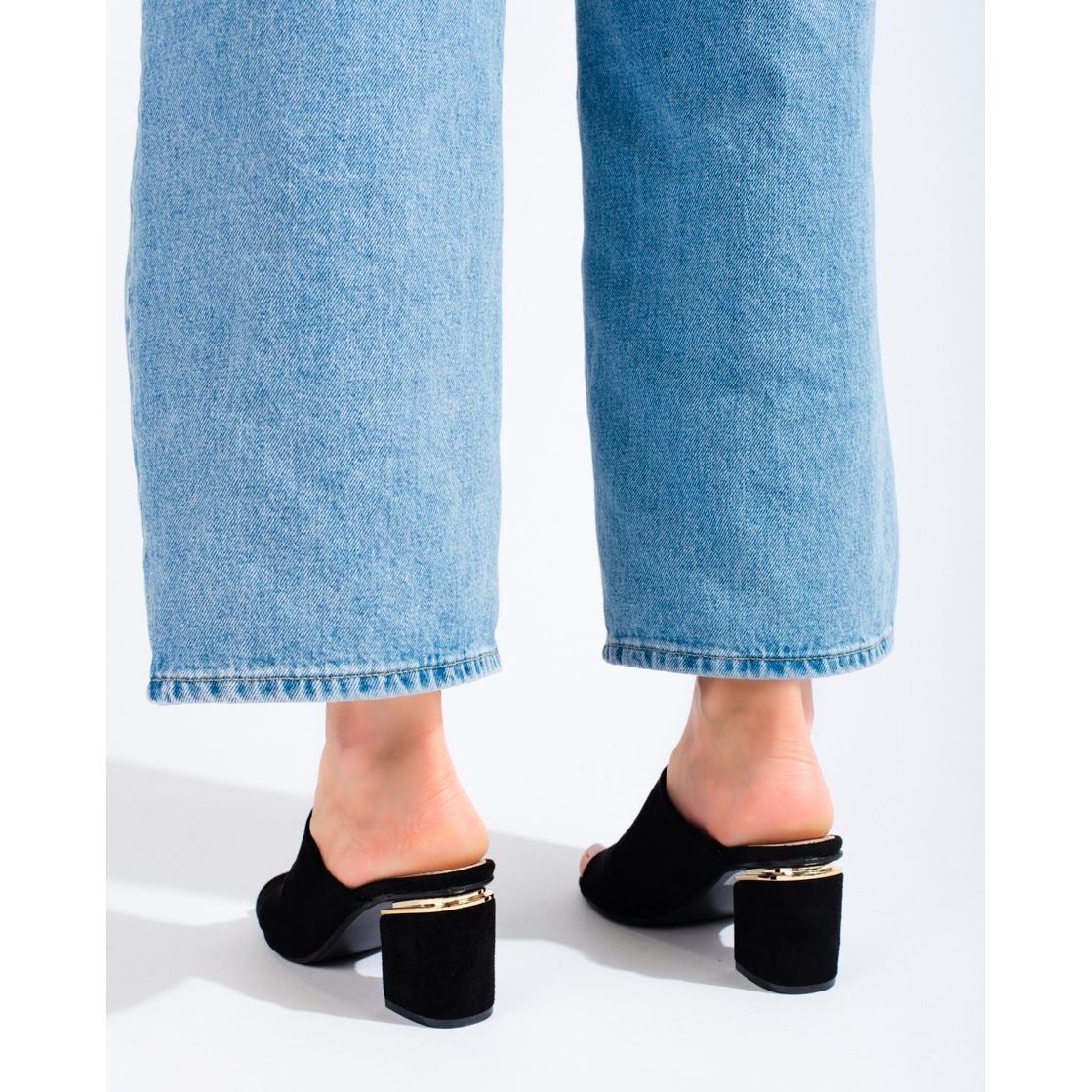 Dessa mulor med öppen häl är ett utmärkt val för vardagsbruk. Tack vare slip-on-fästet är det extremt enkelt att sätta på dem. Tillverkade av mockaimitation, de ser perfekta ut både för stranden och för stadsvandringar. Den klassiska svarta färgen tillför elegans och gör att de matchar många olika outfits.