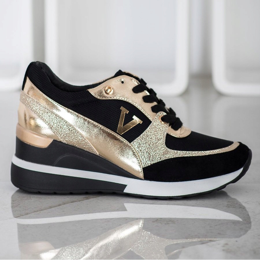 Vinceza wedge sneakers i en fashionabel kombination av svart och guld är ett idealiskt val för kvinnor som värdesätter komfort och stil. Dessa klassiska sportskor är gjorda av ekologiskt läder och kombinerar modern design med funktionalitet, vilket gör dem perfekta för vardagsstyling.