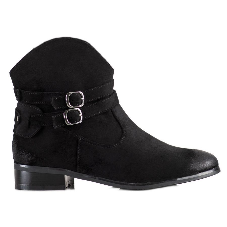 Tillverkade av högkvalitativ mockaimitation, de kännetecknas av en subtil, minimalistisk design, vilket gör dem universella och passar många stilar. Det dekorativa spännet är en viktig detalj som ger skorna karaktär och som skiljer dem från andra modeller. Tack vare den inbyggda, styvade hälen ger VINCEZA cowboystövlar stabilitet och stöd för foten.