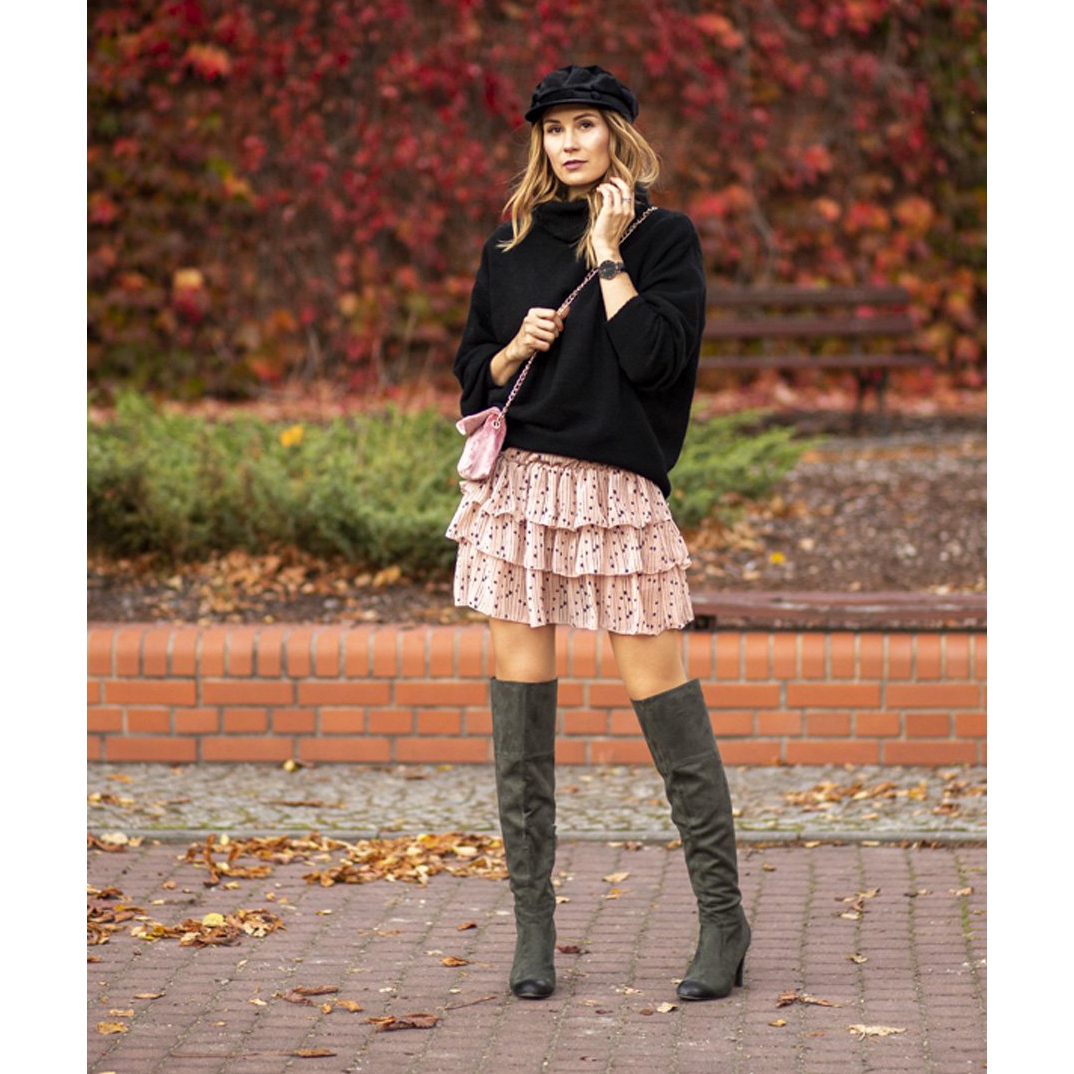 Dragkedjan som sitter på sidan av ovandelen gör den enkel att ta av och på, vilket är en stor fördel i vardagsbruk. Den fylliga, rundade tån och dekorativa skavsår på hälen ger skorna en unik karaktär. Den övre bredden på 46 cm och höjden över knäet gör stövlarna perfekta för många kroppstyper.